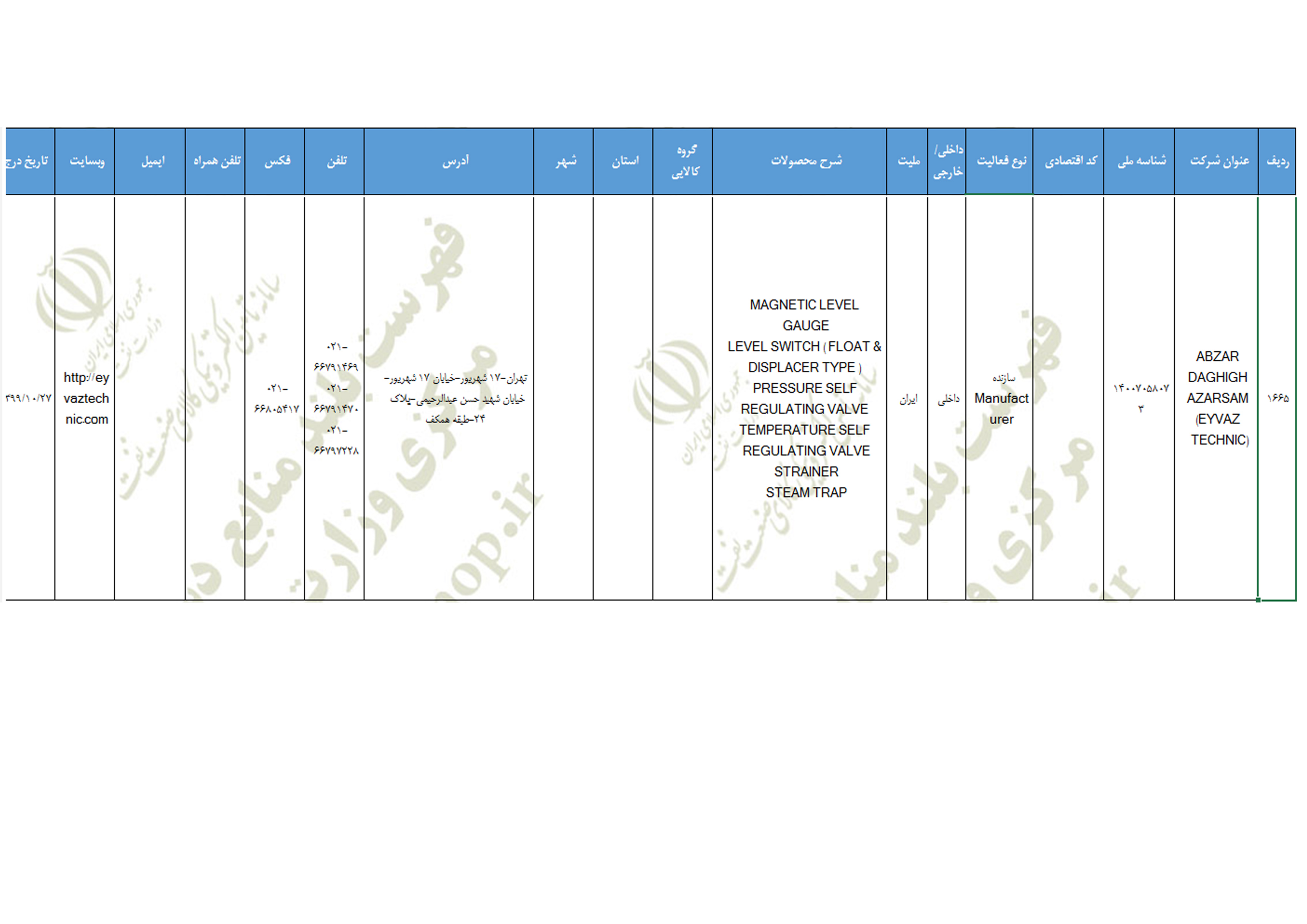 4- ثبت محصولات این شرکت در ایرانکد یا نظام طبقهبندی ملّی کالا و خدمات ایران