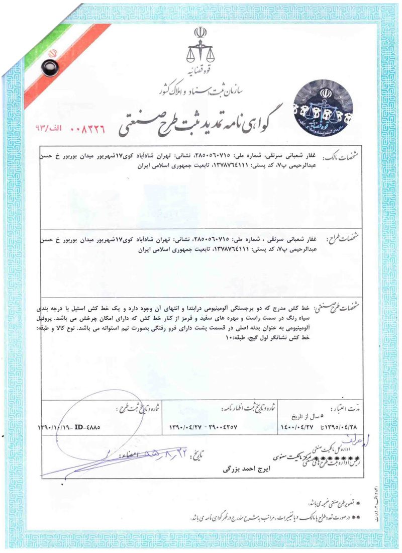 9- گواهی ثبت طرح صنعتی سطح سنج مغناطیسی از اداره کل مالکیت صنعتی به شماره ID 4885
