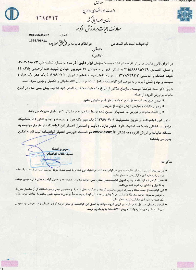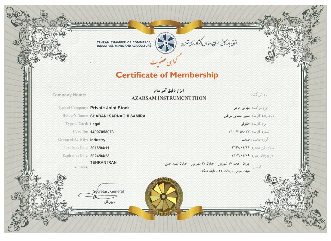 3- گواهی عضویت در اتاق بازرگانی ،صنایع ، معادن و کشاورزی تهران به شماره کارت 14007058073