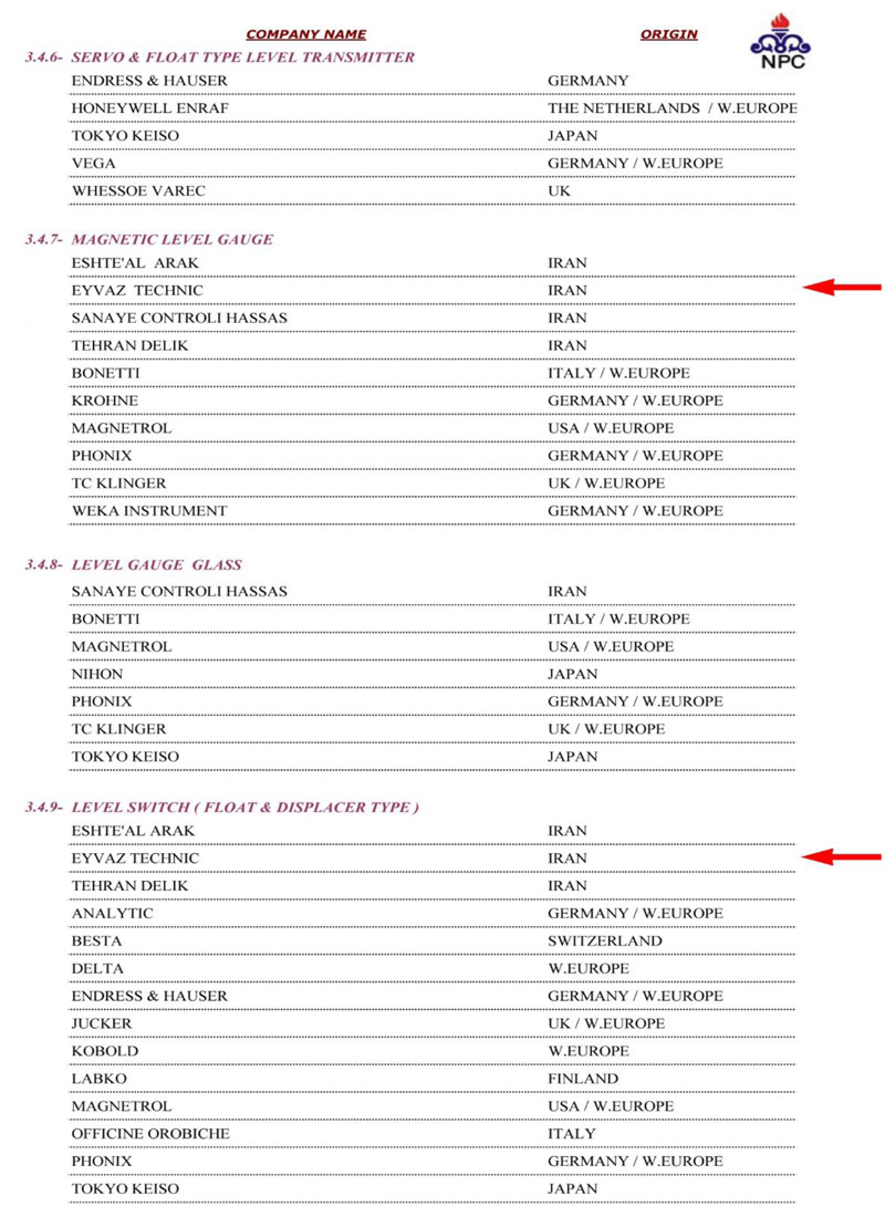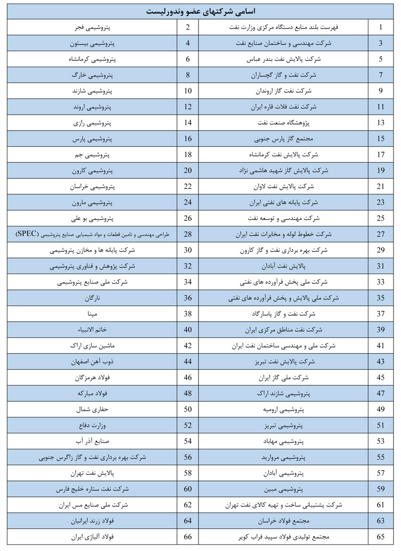 و بسیاری از شرکتهای دیگر که فهرست برخی از آنها تحت فایل پیوست می باشد